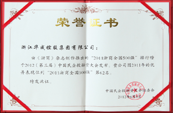浙江華成控股集團有限公司連年被評為蕭山區百強企業、杭州市百強企業、浙江省百強企業、連續16年獲得國家AAA級企業信用等級證書,連續幾十年被國家工商聯評為中國民營企業500強單位,是全國服務業500強企業。